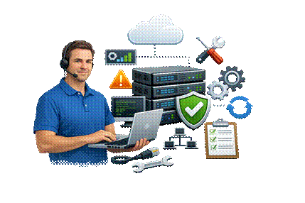 Wir liefern, konfigurieren und updaten Ihre Serverlandschaft. Wir arbeiten mit Ihnen und Ihren MitarbeiterInnen zusammen, welcher Vor-Ort Ihre Arbeitsplätze betreuen. Wir sind Ihr 2nd Level Support und Ihr Spezialist für Windows Netzwerke!